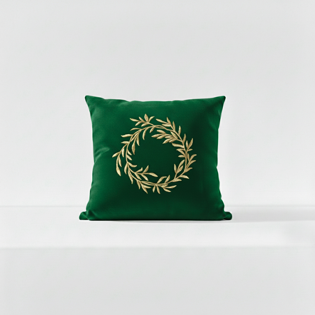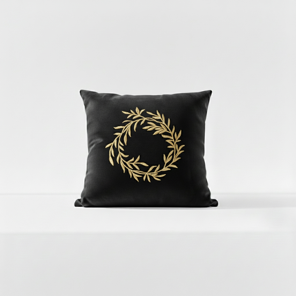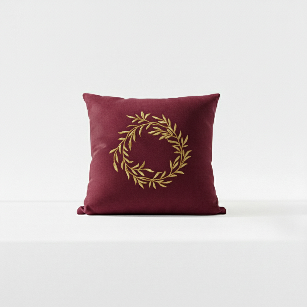 Leaf Whirl Velvet Embroidered Cushion Cover